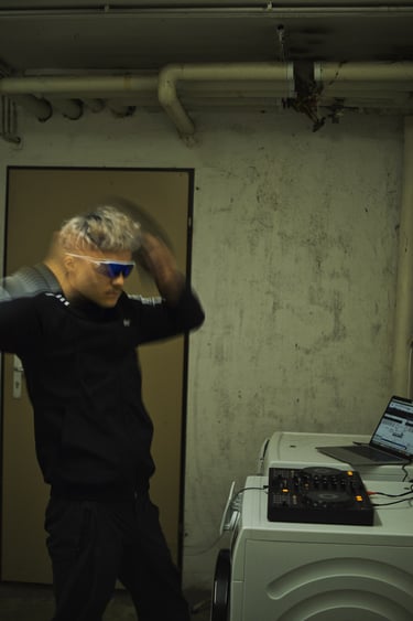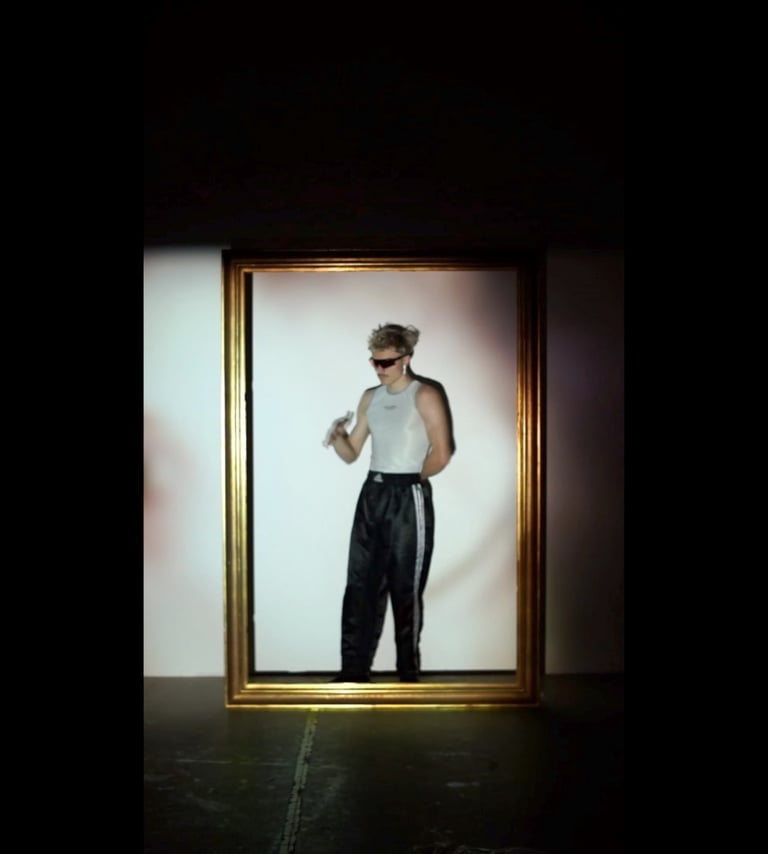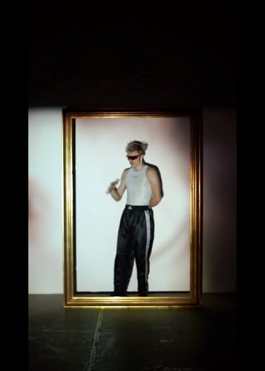 Eine Reflexion über Rausch, Eskapismus und die Illusion von Glück. Der goldene Rahmen hält eine verzerrte, unscharfe Realität fest: Eine Techno-Party als Bühne für den Versuch, Emotionen chemisch zu steuern. Die Musik, die ekstatischen Bewegungen, die Drogen – alles Mittel, um für ein paar Stunden aus dem eigenen Empfinden zu flüchten. Doch der Moment ist flüchtig. Die abrupt endende Musik, das dumpfe Rauschen, die stillen Spuren des Exzesses auf dem Tisch – sie zeigen den Preis für dieses schnelle Glück.